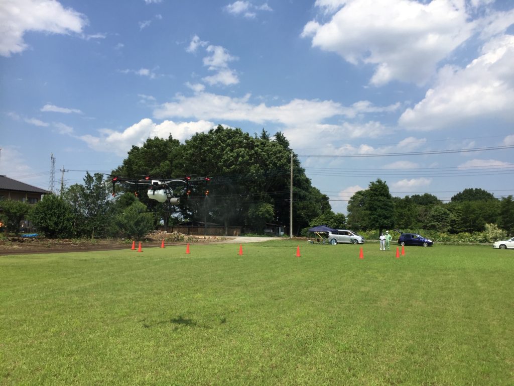 大型の農薬散布ドローンで、この作業するにはローター(羽)を地面にぶつけないような工夫が必用です。